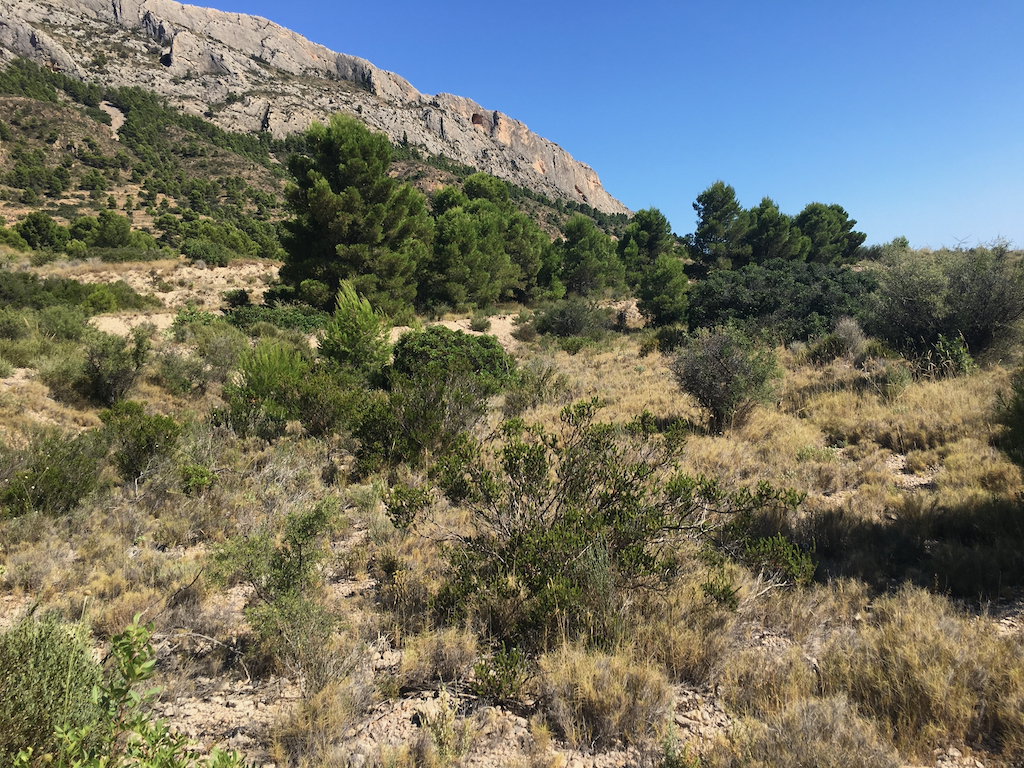 Study sites in eastern Spain along the aridity gradient; from less arid conditions in Tarragona (left) to the drier landscape of Alicante (right).