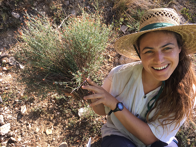 Her work focuses on two shrub species widely distributed in the Mediterranean basin: Anthyllis cytisoides and Globularia alypum. Maya’s project combined fieldwork across a 400 km (nearly 250 miles!) climatic gradient with a controlled common-garden experiment. This dual approach was essential for disentangling genetic and environmental effects. Over six years, she and her team applied repeated disturbances and monitored resprouting responses (always during the hottest part of summer) in nearly 400 wild plants and 60 garden plants.